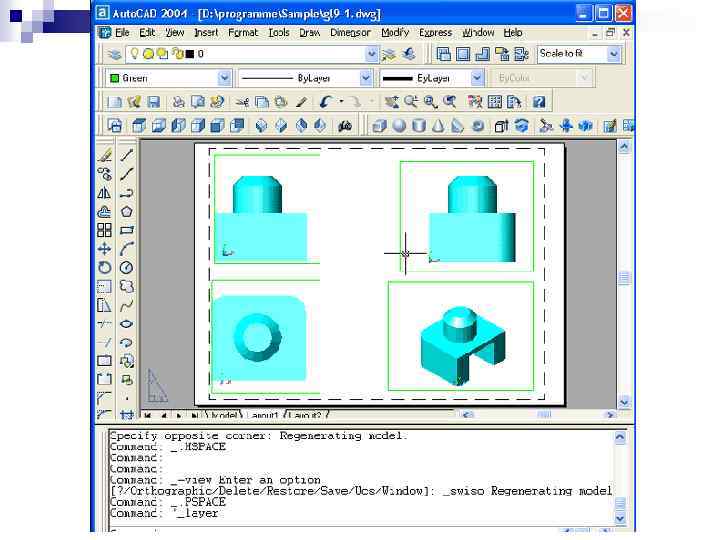 n За допомогою цієї команди графічний екран поділяється на декілька видових екранів, які не перекриваються, кожен з них може містити власне креслення.