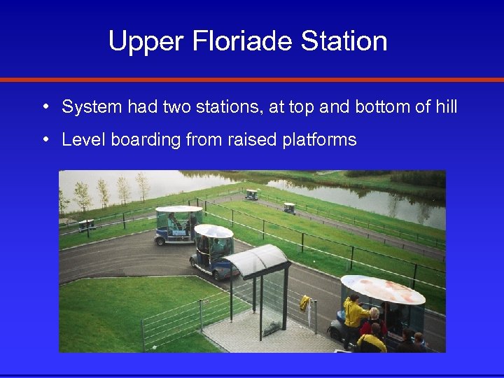 Upper Floriade Station • System had two stations, at top and bottom of hill • Level boarding from raised platforms