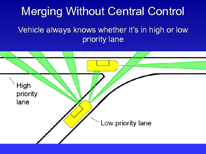 Merging Without Central Control Vehicle always knows whether it’s in high or low priority lane