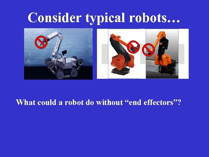 Common end effectors 1. Tools Spot welding Arc welding Drilling, grinding, de-burring, etc. Cutting device (laser, water jet, torch, etc. ) Spray painting