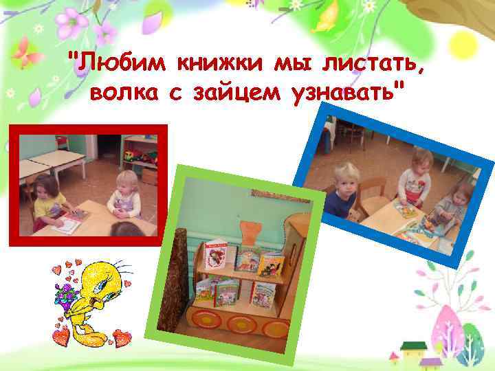 "Любим книжки мы листать, волка с зайцем узнавать"