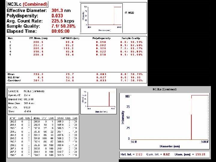 %Encapsulamento = 99 Diâmetro = 250 nm Potencial zeta = -20 m. V Br NC