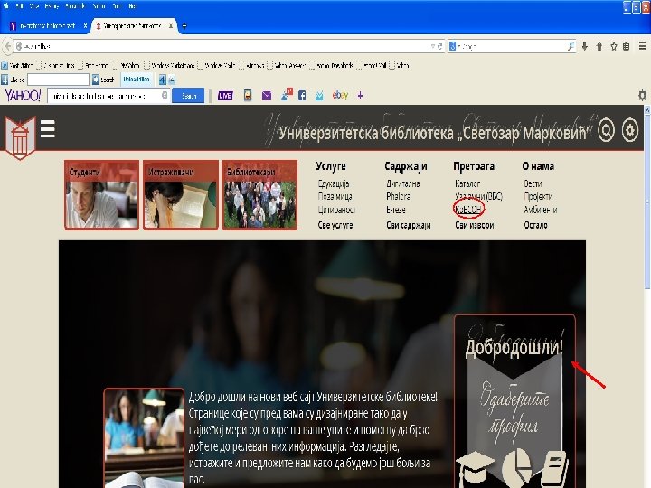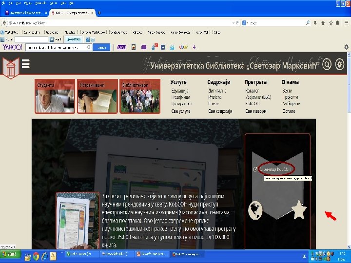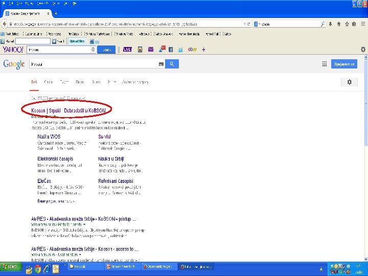 Kaко доћи до Ко. БСОНА? n n • n Преко претраживача Гугла (Google-a) Када одете на сајт Универзитетске библиотеке http: //www. unilib. bg. ac. rs/ па на линк Ко. БСОН који вас води на следећу страницу са линком којим идете на: http: //kobson. nb. rs/ Ко. БСОН се може користити само са компјутера који су на Академској мрежи (компјутера на Факултетима, у Универзитетској и Народној библиотеци у Београду, као и Универзитетским библиотекама у Нишу, Крагујевцу, Библиотеци Матице Српске)