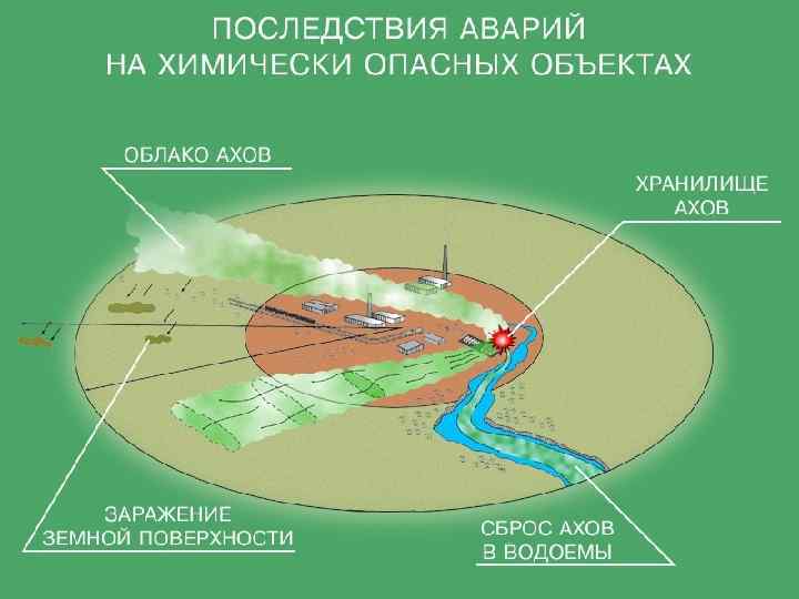 Основным поражающим фактором при авариях на ХОО является химическое заражение приземного слоя атмосферы, приводящее к поражению людей, находящихся в зоне действия АХОВ