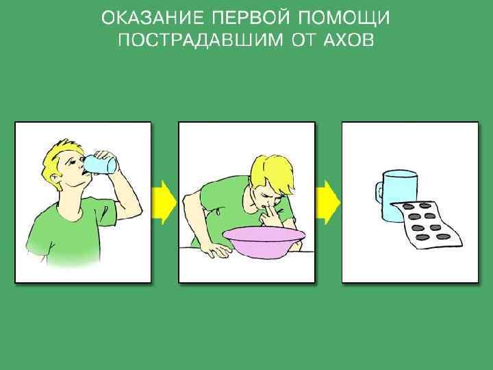 Первая помощь при поражении хлором • Если все таки произошло поражение хлором, пострадавшего немедленно выносят на свежий воздух, тепло укрывают и дают дышать парами спирта или водки.