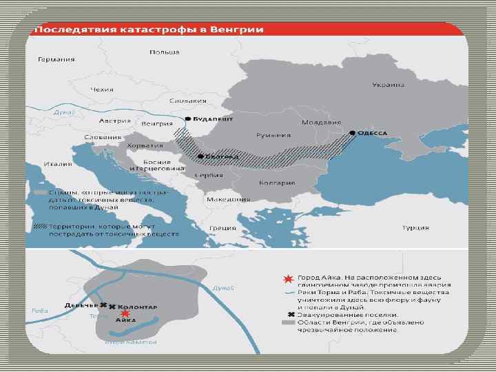 Сам район, несмотря на расположенное там вредное производство, с точки зрения экологии всегда считался относительно чистым. Не далеко отсюда курортная зона, всемирно известное озеро Балатон. Эту местность пересекают многочисленные мелкие реки, многие впадают в Дунай, угроза экологической катастрофы налицо. Ушла не одна неделя, чтобы собрать все химикаты. Что касается пастбищ и пахотных полей, то уже ясно, что на такой земле в ближайшие годы, ничего не удастся вырастить.