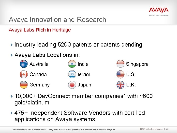 Avaya and NES: A History of Innovation © 2009. All rights reserved. 12