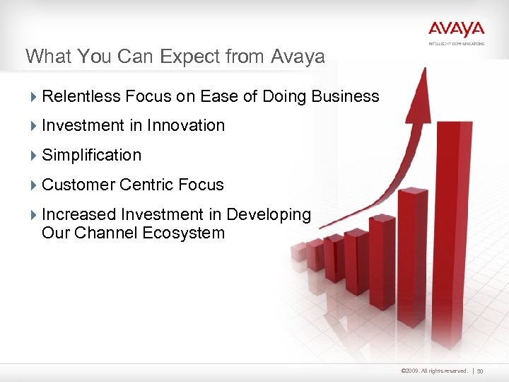 What You Can Expect from Avaya 4 Relentless Focus on Ease of Doing Business 4 Investment in Innovation 4 Simplification 4 Customer Centric Focus 4 Increased Investment in Developing Our Channel Ecosystem © 2009. All rights reserved. 30