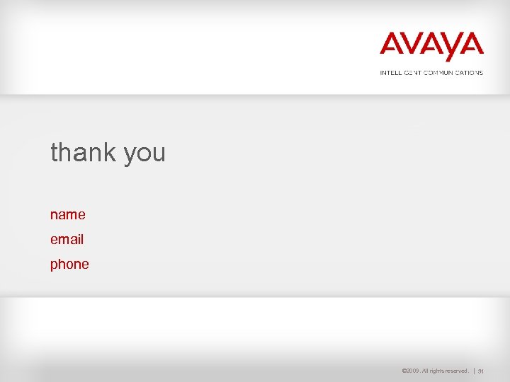 thank you name email phone © 2009. All rights reserved. 31