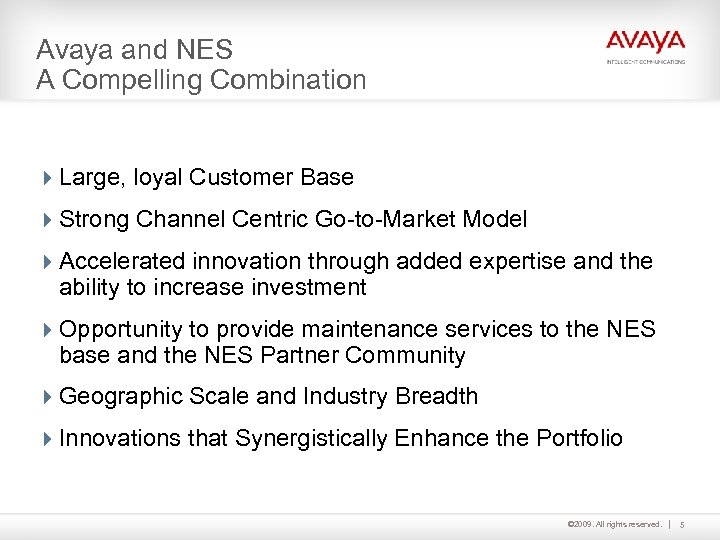 4 Common Strategic Vision 4 Focused on Communications Innovation in the Enterprise 4 History of Reliability, Scale-ability, Investment Protection 4 Expertise 4#1 or #2 in All Markets Served (except Data) © 2009. All rights reserved. 4