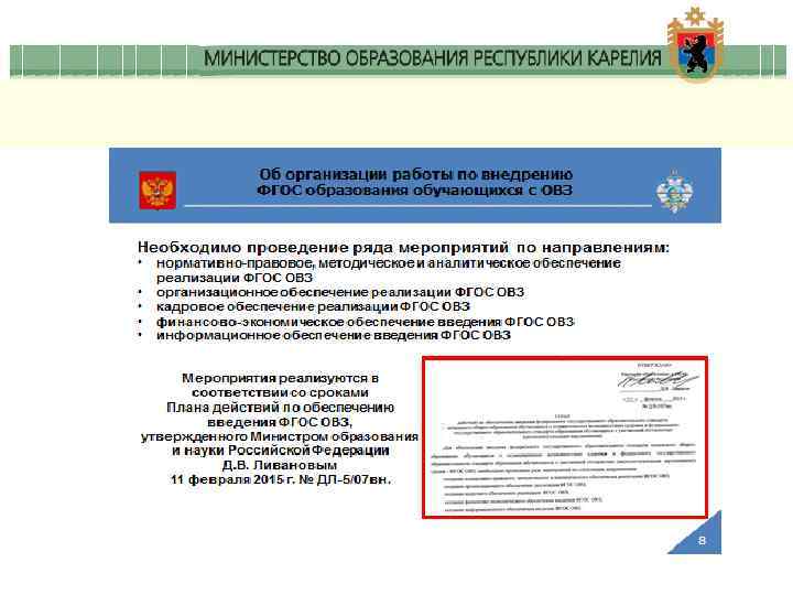 Методические рекомендации Министерства образования Республики Карелия • письмо Министерства образования Республики Карелия от 18 июля 2013 года № 5568/15 -29/МО-и «Об организации дистанционного обучения детей с ограниченными возможностями здоровья, в том числе с инвалидностью» ; • письмо Министерства образования Республики Карелия от 21 августа 2014 года № 6291/15 -30/МО-и «О проведении мониторинга дистанционного обучения детей с ограниченными возможностями здоровья, в том числе с инвалидностью» ; письмо Министерства образования Республики Карелия от 28 апреля 2014 года № 3169/15 -29/МО-и «О полномочиях психолого-медико-педагогических комиссиях по вопросам итоговой аттестации обучающихся с ограниченными возможностями здоровья» ; письмо Министерства образования Республики Карелия от 3 февраля 2015 года № 961/15 -15/МО-и «О заключениях психолого-медико-педагогических комиссиях» ; письмо Министерства образования Республики Карелия от 16 июля 2015 года № 6097/15 -15/МО-и «О разработке учебных планов общеобразовательных организаций Республики Карелия, реализующих образовательные программы для обучающихся с ограниченными возможностями здоровья, на 2015 -2016 учебный год» ; письмо Министерства образования Республики Карелия от 20 июля 2015 года № 6164/15 -15/МО-и «Рекомендации по работе психолого-медико-педагогических комиссиях» . • •