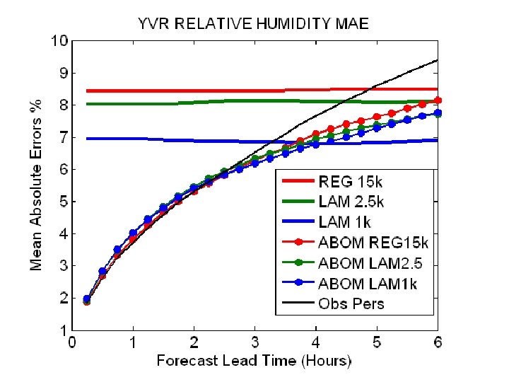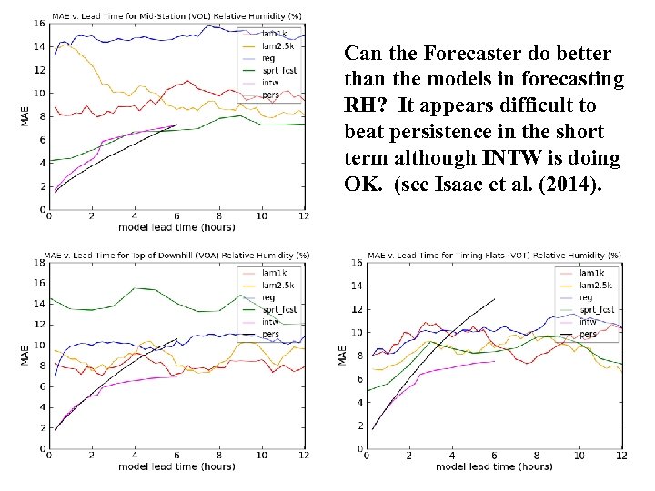 Can the Forecaster do better than the models in forecasting RH? It appears difficult to beat persistence in the short term although INTW is doing OK. (see Isaac et al. (2014).