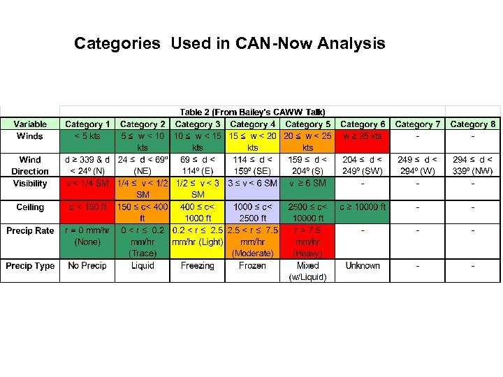 Categories Used in CAN-Now Analysis