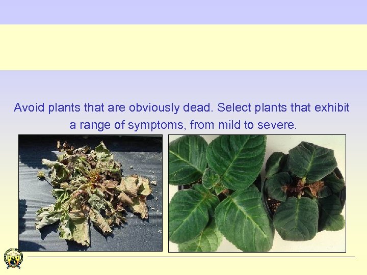Avoid plants that are obviously dead. Select plants that exhibit a range of symptoms, from mild to severe.