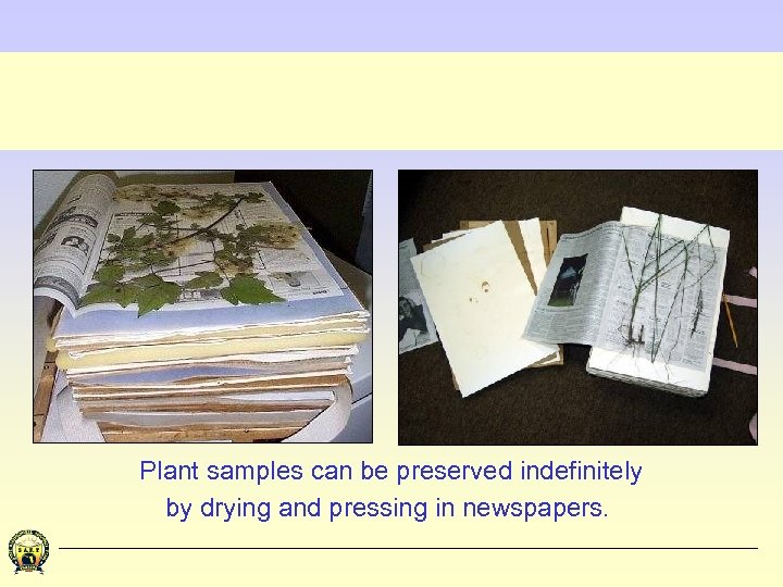 Plant samples can be preserved indefinitely by drying and pressing in newspapers.