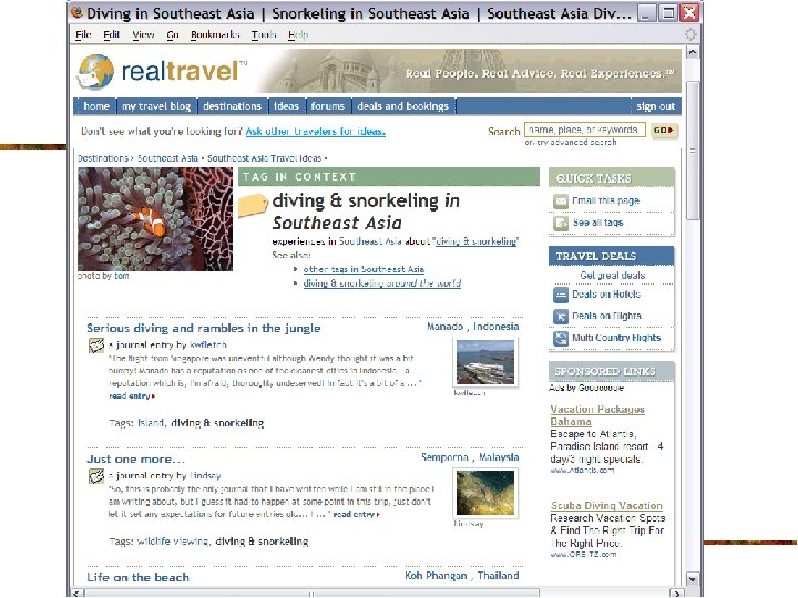 UI Technique: Pivot Browsing n n n Real. Travel manages an authoritative central database of destinations (places). Contributors place their content into the destination hierarchy. The combination offers travel researchers powerful browsing and search capabilities.