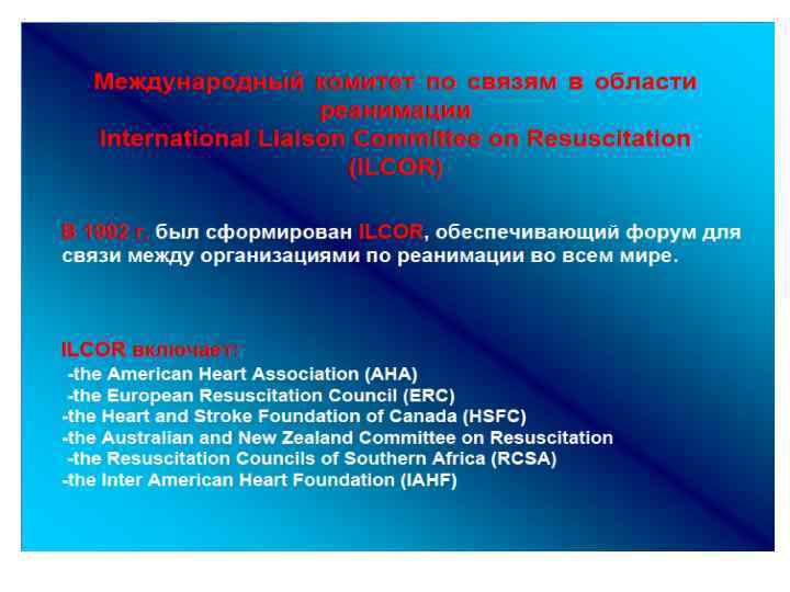 • Внесенные изменения не предполагают, что реанимационные мероприятия, которые рекомендовались раньше, являлись ошибочными или вредными. Использование новых рекомендаций свидетельствует лишь о том, что постоянное совершенствование реанимационных технологий позволит существенно улучшить исходы.