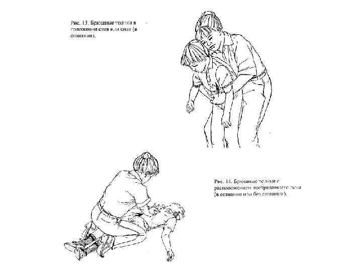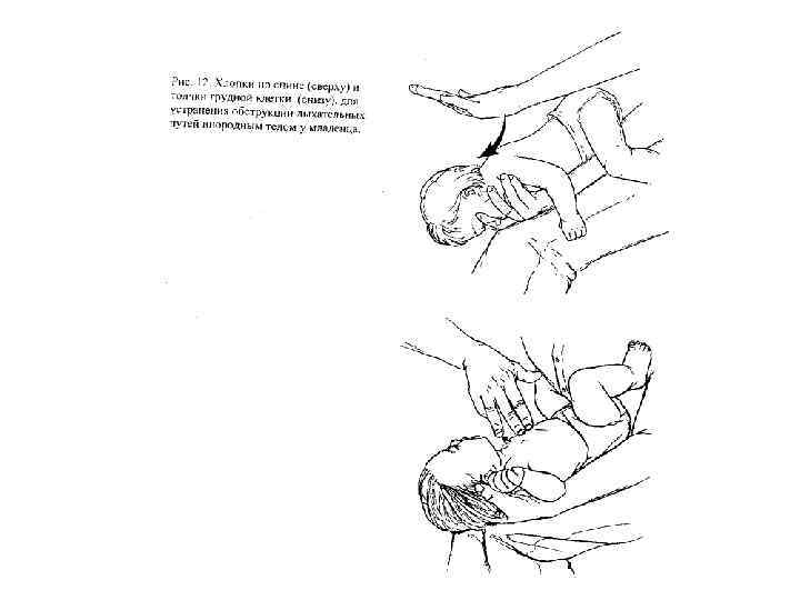 Приемы для удаления инородных тел • Хлопки по спине • Нажатия (надавливания) на грудную клетку • Брюшные толчки или прием Г. Хаймлиха.