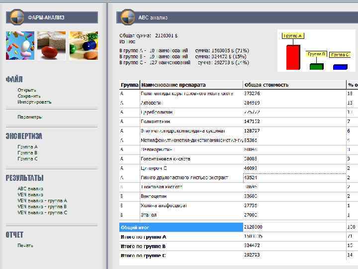 Автоматизированная система Фарм. Компайл Программа «Фарм. Компайл» предназначена для проведения автоматизированного АВС- и VENанализа лекарственного обеспечения на основе данных по затратам на ЛС в конкретном учреждении (регионе) за определенный период