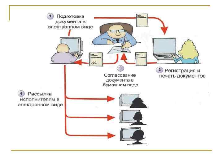 Автоматизация документооборота предполагает использование специального программного обеспечения для работы с документами и участие электронных документов в системе информационного обмена. При этом документы, создаваемые в ходе функционирования организации, обязательно регистрируются и хранятся в едином информационном пространстве. Обеспечивается коллективная работа с документами, то есть над каждым из них последовательно работает несколько сотрудников в соответствии со своими функциональными обязанностями.