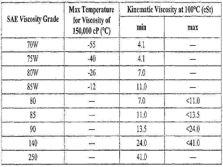 По вязкости их делят на 4 класса: 9, 12, 18, 34. Принадлежность к определенному классу определяется по кинематической вязкости при 100 °С и минимальной температуре, при которой показатели динамической вязкости не превышают 150 Па • c.