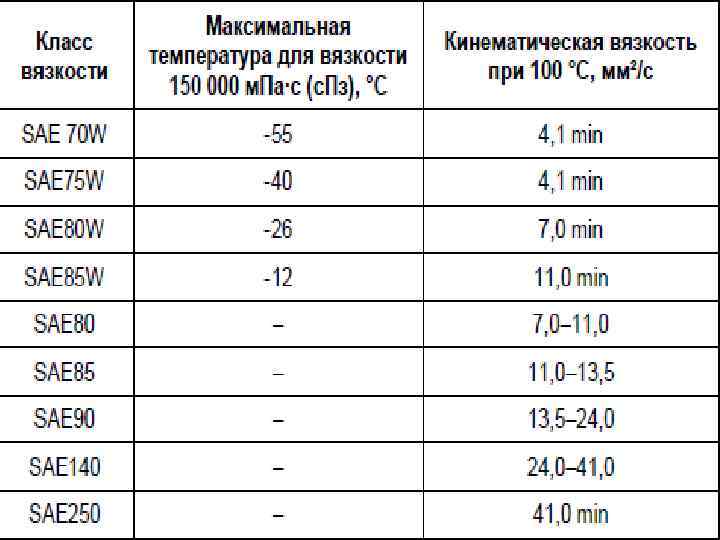 Американская ассоциация автомобильных инженеров SAE (Society of Automotive Engineers) характеризует вязкость, текучесть при разных температурах.