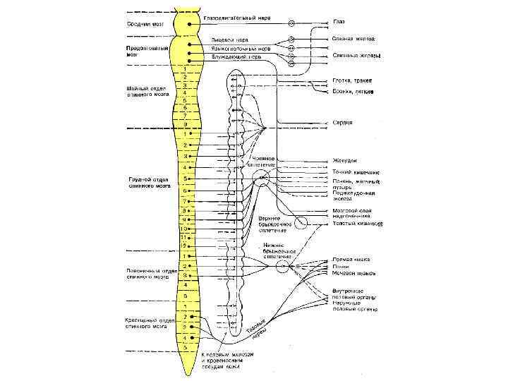 Спинальные центры выделяют • • Сердечный центр – Th 1 -5 Сосуды и потовые железы – С 8 -L 3 Слюнной центр – Th 2 -4 …