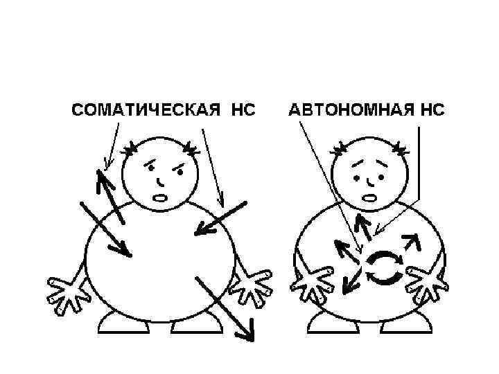 • Рефлексы, возникающие при раздражении чувствительных волокон, идущих в составе симпатических и парасимпатических нервов, вовлекают в деятельность не только автономную, но и соматическую нервную систему • Это справедливо для сегментарных и рефлекторных дуг более высокого порядка и не относится к местным периферическим дугам автономного рефлекса