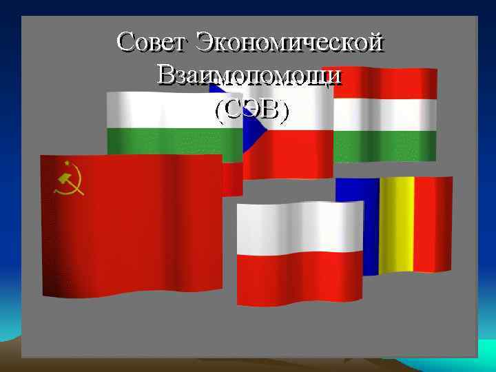 Болгария Венгрия Сырье, нефть, газ Польша Координация планов Румыния Финансовая помощь Чехословакия Албания ГДР (с1949 г. ) Монголия