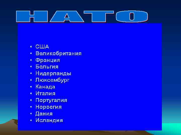 • -создание военнополитических блоков • -война в Корее (1950 -1953 гг. ) • Берлинский кризис 1948 г. и др.