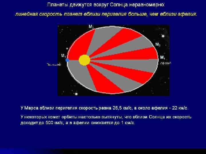 2. Радиус – вектор планеты за равные промежутки времени описывает равновеликие площади. 3. Квадраты периодов обращения планет вокруг Солнца относятся между собой как кубы больших полуосей их орбит.