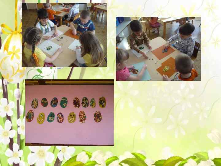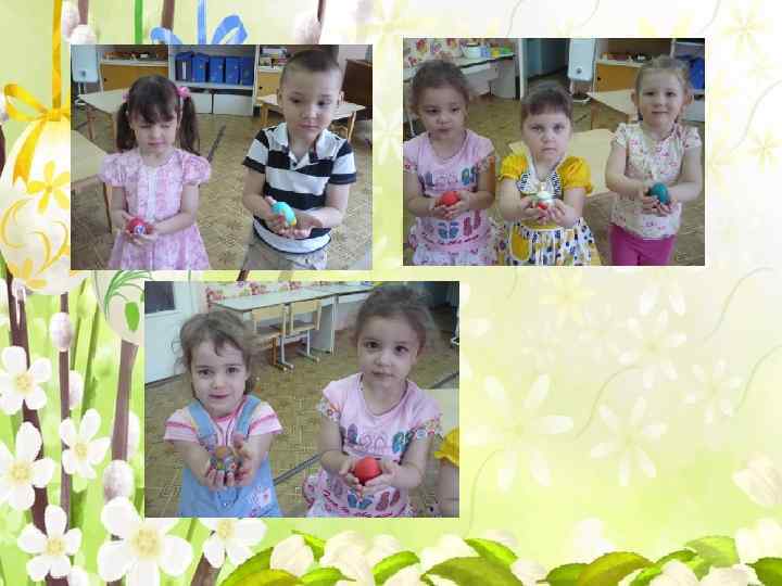 Познавательно-речевое развитие • НООД «Готовимся к празднику Пасха» • Беседы с рассматриванием иллюстраций • Просмотр видео фильмов Художественно-эстетическое развитие • Рисование на тему «Украшаем пасхальные яйца» , • Лепка «Яички к празднику» . Работа с родителями • Консультации «Как и чем можно порадовать ребёнка в праздник? » , «Пасхальные обычаи на Руси» • Совместные работы родителей и детей «Яйца-разукрашки» • Выставка детских работ