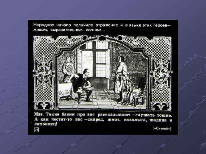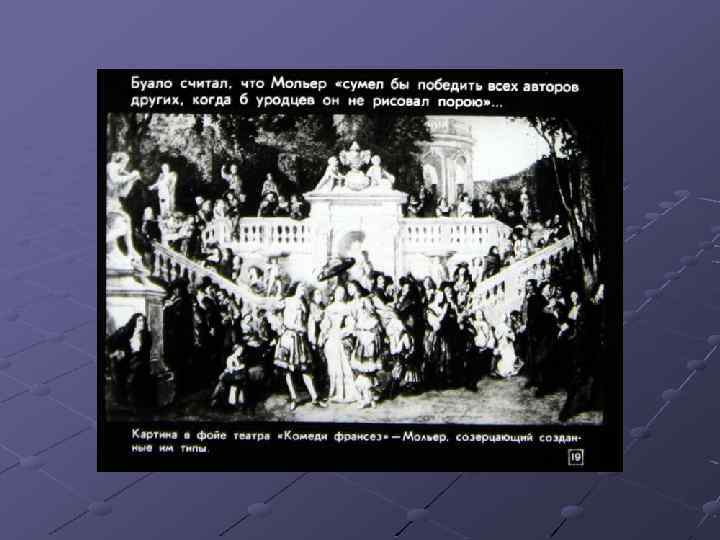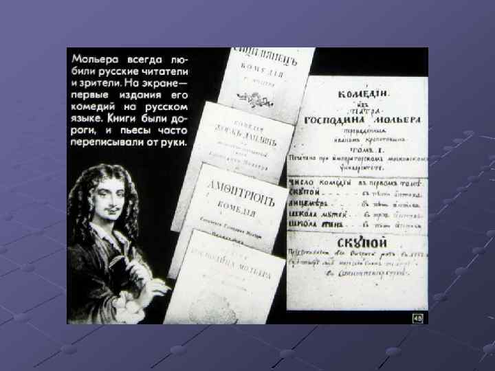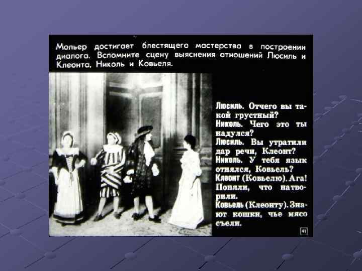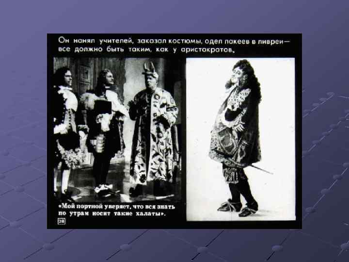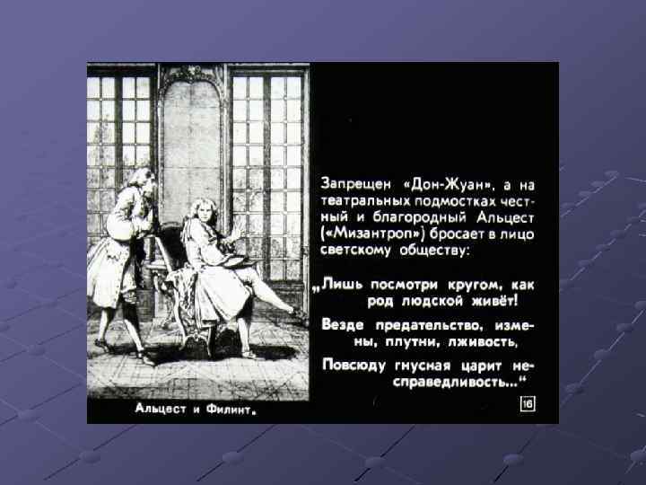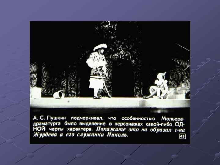 Ш Перечислите основные черты классицизма. Найдите их в комедии Мольера «Мещанин во дворянстве» , приведите примеры (задание с слайда № 44). Ш Какие традиции классицизма нарушил Мольер? Ш Расскажите об особенностях комедии «Мещанин во дворянстве» . Ш Подготовьте сообщение о М. В. Ломоносове.