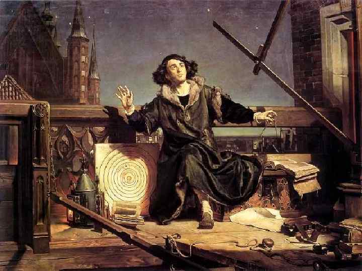 n n n Николай Коперник (1473 - 1543) n Польский астроном, создатель гелиоцентрической системы мира. Человек, «остановивший Солнце и сдвинувший Землю» . Был каноником в одном из польских монастырей. В труде «Об обращениях небесных сфер» сформулировал основы гелиоцентрической системы мира в качестве гипотезы, облегчающей вычисление положение небесных тел. Предположил, что в центре мира находится Солнце, а Земля как рядовая планета вращается вокруг него: «Все замечаемые нами у Солнца движения не свойственны ему, но принадлежит Земле и нашей сфере, вместе с которой мы вращаемся вокруг Солнца, как и всякая другая планета» . Однако Коперник продолжал считать мир конечным, шарообразным и ограниченным сферой неподвижных звёзд. Он лишь поменял местами Землю и Солнце. Гелиоцентрическая система Коперника произвела революцию в естествознании, заставила критически пересмотреть многие считавшиеся ранее непререкаемыми истины. Она показала, что не следует абсолютно доверять показаниям чувств. Взгляды Коперника вызвали активное противодействие католической церкви, поскольку приводили к отрицанию уникальности спасительной миссии Христа.