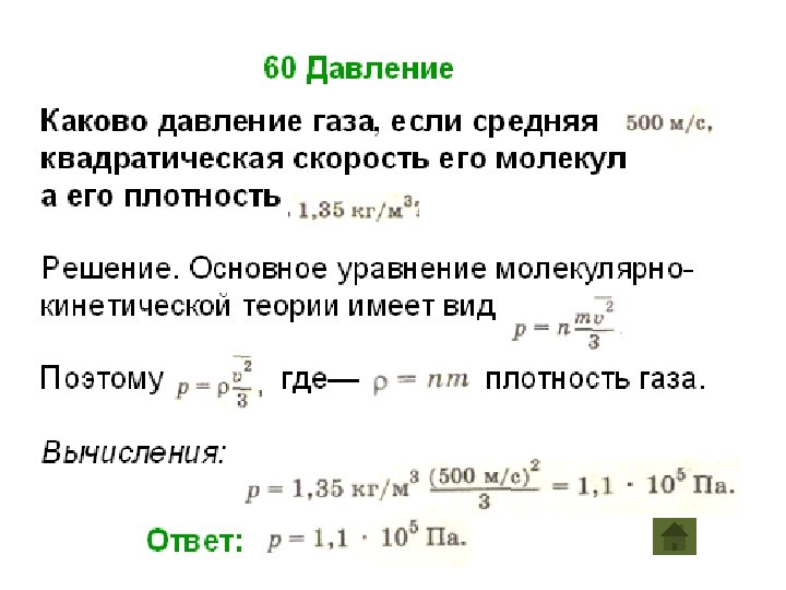 60 Давление Каково давление газа, если средняя квадратическая скорость его молекул его плотность Ответ: а