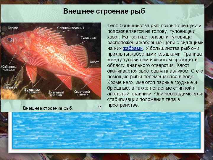 Самой главной особенностью внешнего строения рыб, с помощью которой они передвигаются в воде, являются плавники 1