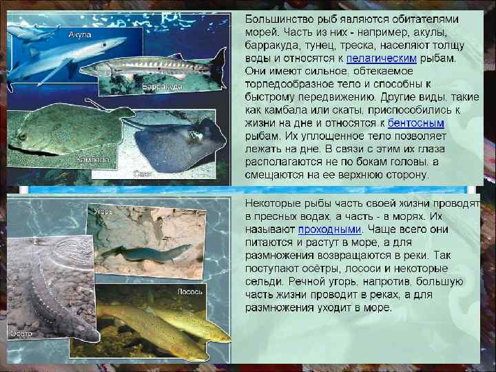 ЭКОЛОГИЧЕСКИЕ ГРУППЫ РЫБ МОРСКИЕ 1 ПРОХОД 2 НЫЕ ПРЕСНО 3 ВОДНЫЕ СОЛОНО 4 ВАТЫЕ