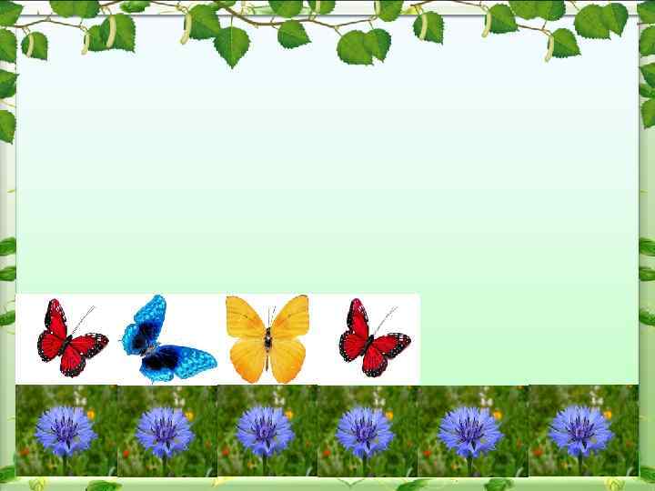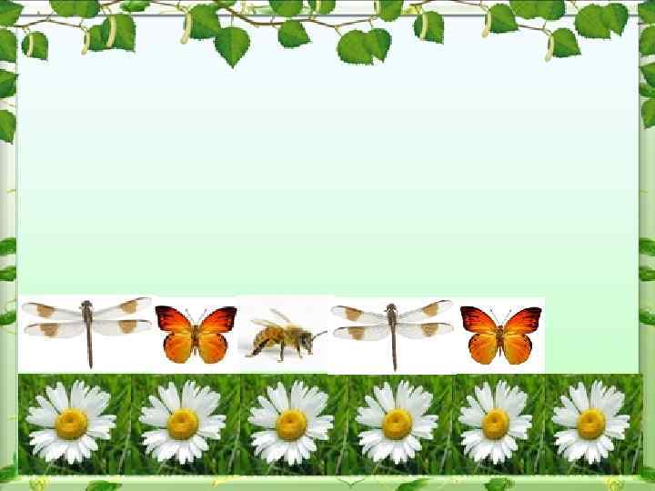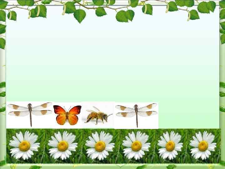 Рекомендации взрослым Данная игра создана по принципу игры «Продолжи узор» , т. е. ребенок должен продолжить располагать изображения насекомых в заданной последовательности. Обратите внимание ребенка на расположение картинок, предложите ему подумать и сказать – какая картинка будет следующей. Следующий слайд – проверка правильности ответа. Спрашивайте ребенка до тех пор, пока все насекомые не займут свои места на цветах. Не забудьте подбодрить ребенка при возникновении трудностей и похвалить за сообразительность и желание узнавать новое, преодоление трудностей.