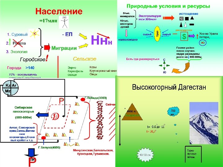 Расселение населения Зона Севера Основная зона S=64 % S=34 % 11, 5 млн. чел. 138 млн. чел. - Старое освоение -↑ П (50 ч/км²) -Много крупных городов городских агломераций Аридная зона -Засушливые р-ны п/пустынь -Сосредоточение важнейших ресурсов страны (0, 9 ч/км²) -Расс. выборочное, очаговое (около П↓ ресурсных баз, рек, транспортных путей)