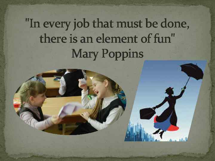 "In every job that must be done, there is an element of fun" Mary Poppins