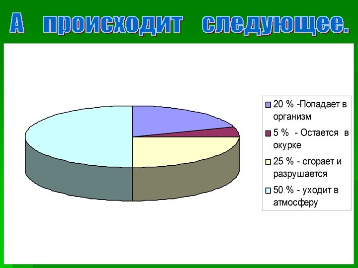 Известно, что в мире систематически курит 60% мужчин и 20% женщин. Из систематически курящих мужчин 17% начали курить в 8 - 9 лет. Большинство подростков начинают курить под влиянием товарищей в компании (27%), из любопытства (40%), в подражание взрослым (17%). Показательно, что 85% курящих подростков - из семей, где хотя бы один родитель курит, остальные 15% - из некурящих семей. Среди девушек причины курения такие: желание привлечь к себе внимание, выглядеть модно, современно, эффектно, казаться окружающим независимой, уверенной в себе. Еще в начале ХХ века курящая женщина была редкостью, сейчас среди 17 - 18 -летних курящих девушек столько же, сколько курящих парней. Алкогольной статистики в России нет, но: В России 75 000 человек ежегодно погибают от водки Около 3 млн. человек в России вовлечено “в тяжелое и болезненное пьянство”. 1/3 всех психических заболеваний связаны с алкоголизмом 90% дебильных детей рождается от пьющих родителей. Почти 100% осужденных за хулиганство совершили проступки в пьяном виде.