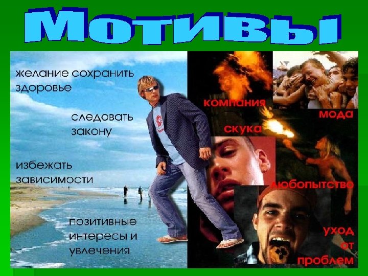 § § § Любопытство Желание быть принятым в группе сверстников. Быть «крутым» «Легкое» общение Неумение отказать Просто так Удовольствие, развлечение Пример друзей и взрослых Влияние кино, телевидения, рекламы Баловство от нечего делать Уйти от проблем