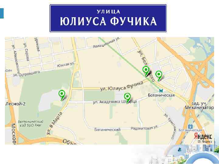 Материалы использованные для работы yandex. ru/maps rutraveller. ru https: //ru. wikipedia. org/wiki/Улица_Юлиуса_Фучика_(Екатеринбург)