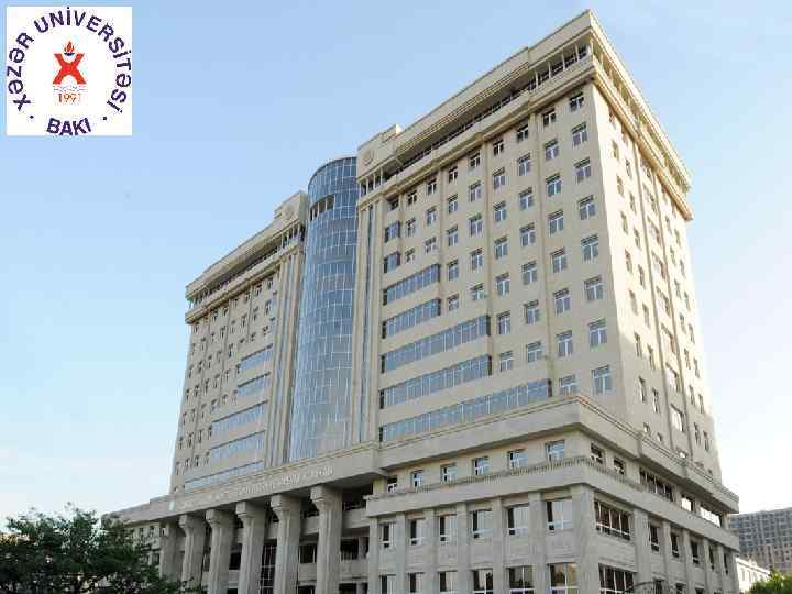 Образование Высшие учебные заведения Бакинский государственный университет • Первое высшее учебное заведение русско-европейского типа — Бакинский государственный университет основан в 1919 году. В состав университета также входят НИИ прикладной математики, выставочный центр, 5 музеев, библиотека и издательство. Университет Хазар • Первое высшее учебное заведение современного Азербайджана — частный (первый) Университет Хазар основан в 1991 году. Основной язык преподавания — английский, в случае некоторых специальностей употребляются оба — английский и азербайджанский языки. Отличается сетью международных программ сотрудничества.