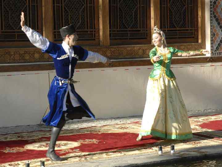 НАЦИОНАЛЬНАЯ ОДЕЖДА АЗЕРБАЙДЖАНА Национальные костюмы всегда являются одним из ценных исторических источников, с помощью которых можно изучить культуру того или иного народа. Так и азербайджанский национальный костюм на протяжении веков являлся отражением самобытной культуры азербайджанского народа, постепенно видоизменяясь, он становился выразителем национального менталитета, и мог поведать очень многое о традициях и обычаях народа. Так, к примеру, в ходе археологических раскопок в Азербайджане были найдены бронзовые игла и спица, датирующиеся 3 тысячелетием до н. э. , что является доказательством способности древних предков азербайджанцев уже в то время самостоятельно шить себе одежду. Обнаруженные многочисленные золотые украшения и глиняные сосуды в форме туфли, относящиеся к 4 - 3 векам до н. э. , доказывают, что еще в древности азербайджанцы обладали развитой материальной культурой. В ходе работ в захоронении возле Дворца Ширваншахов (15 век) на территории города Баку выявлены остатки ценных камковых и шелковых тканей.