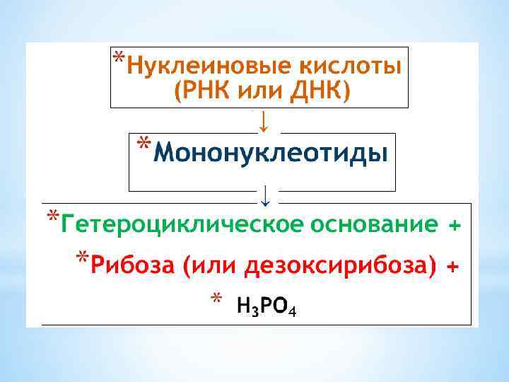 РНК Урацил Цитозин, аденин, гуанин ДНК Тимин Цитозин, аденин, гуанин