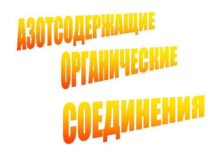 АЗОТСОДЕРЖАЩИЕ ОРГАНИЧЕСКИЕ СОЕДИНЕНИЯ Органические подразделяют на: соединения, – нитросоединения, – амины, – нитрилы и изоцианиды, – азо- и диазосоединения. содержащие азот,