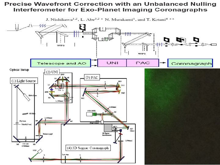 Наиболее точные методы коррекции волнового фронта работают на лабораторном столе и только в перспективе достигнут требуемых точностей для погашения на 10 -9. . 10 -10 ~ λ/5000. Возможно ли, неточной системой АО получить точную компенсацию ошибки ? ◊ (1) Метод UNI (несбалансированного интерферометра) и PAC (фазовой и амплитудной коррекции) ◊ (2) Предложен метод EUNI (существенно несбалансированного интерферометра)