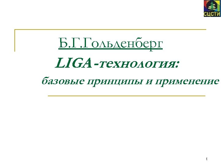 Б. Г. Гольденберг LIGA-технология: базовые принципы и применение 1
