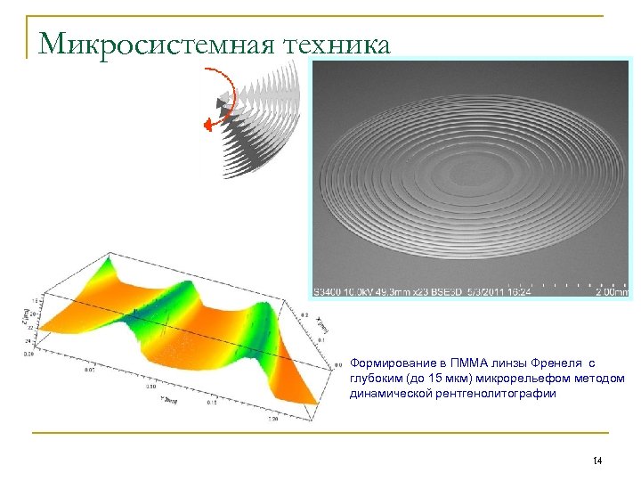 Микросистемная техника Формирование в ПММА линзы Френеля с глубоким (до 15 мкм) микрорельефом методом динамической рентгенолитографии 14